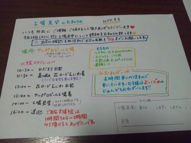 9月26日(土)に工場見学を予定しています♪