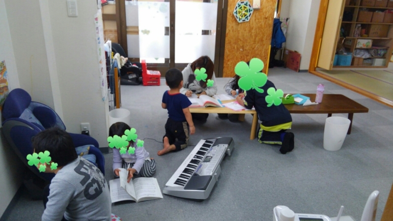 キーボードを弾く子や塗り絵をする子