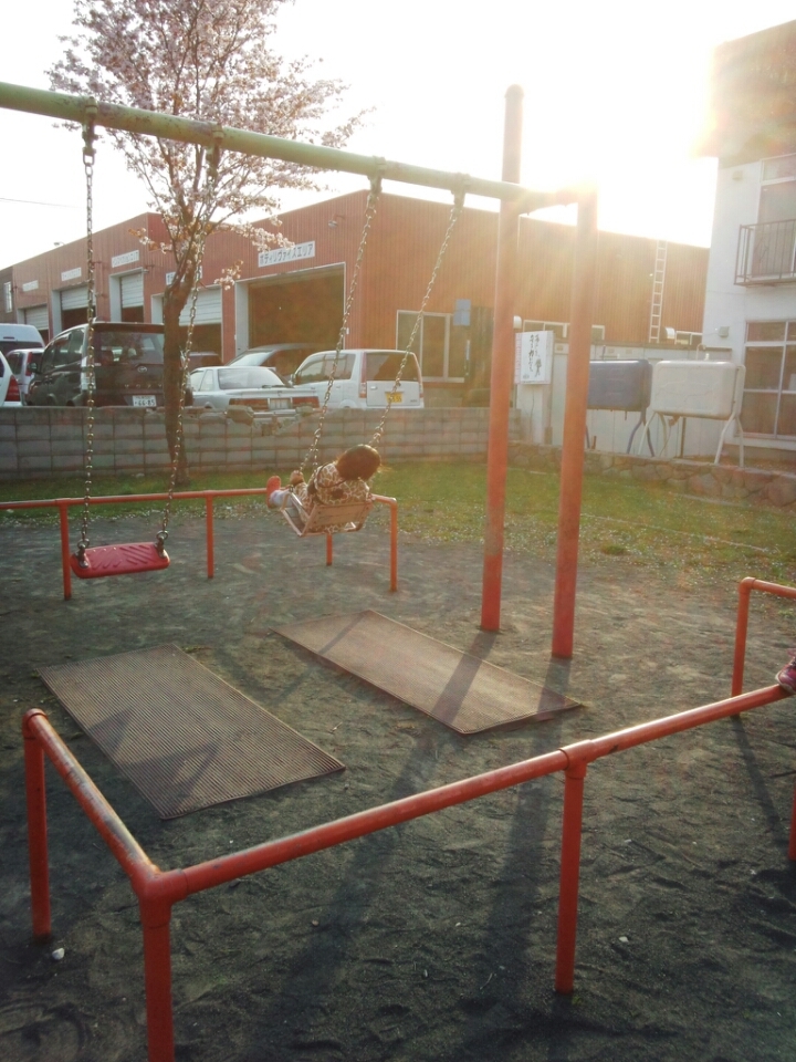 公園に着いたら、定番の鬼ごっこをしたり、ブランコにのったりにゃ