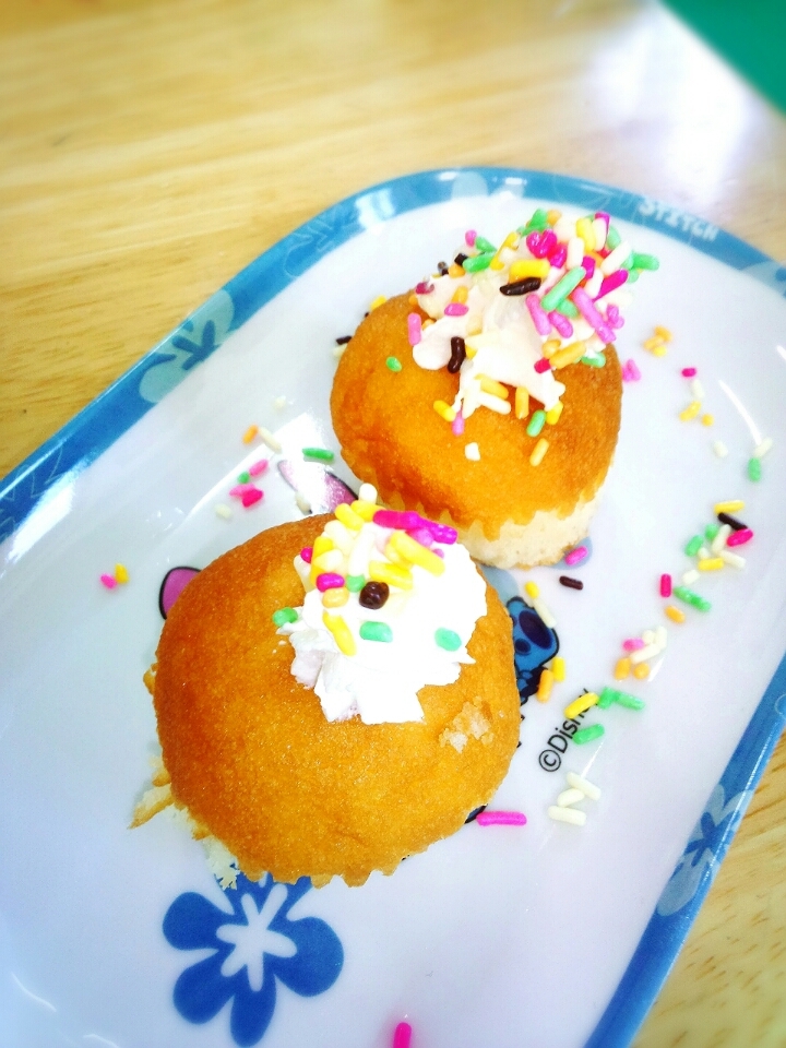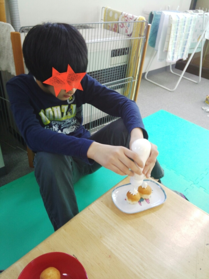 誕生会では自分でトッピングしてケーキを飾り付けします(笑)