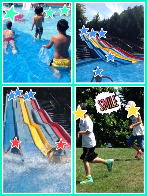 今日は、午前中いつもとは違う所のプールへ遊びに行きました