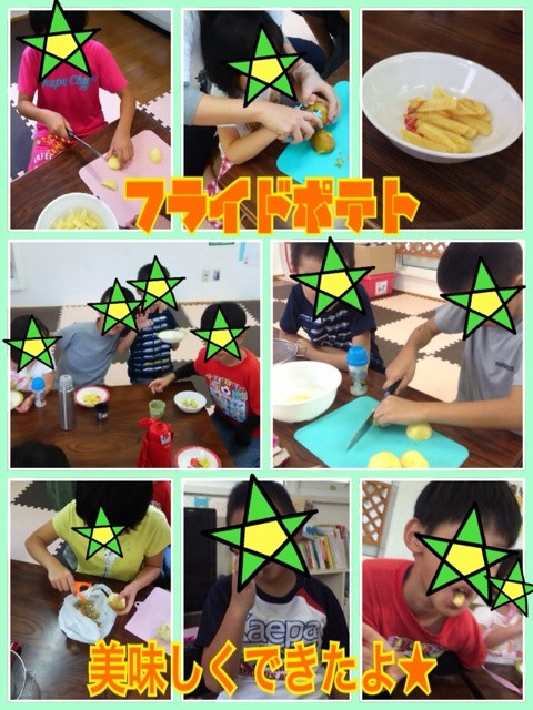 作り方の紙を見ながら進めていき~それぞれのグループの出来上がったポテトを食べ比べ