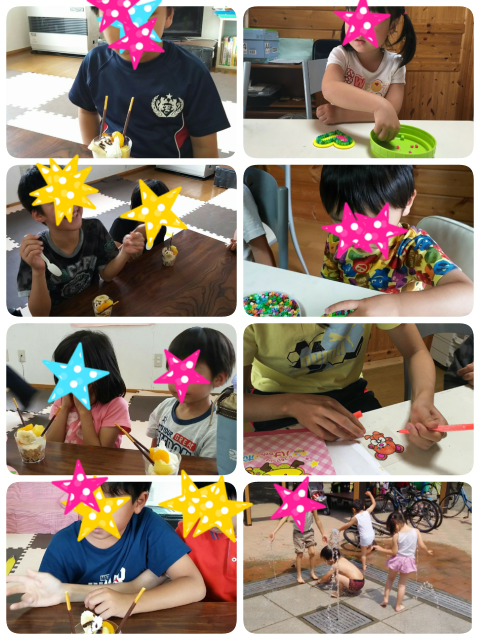 自由時間にはアイロンビーズやプラバンとお祭り準備をし、今日もあっというまでした