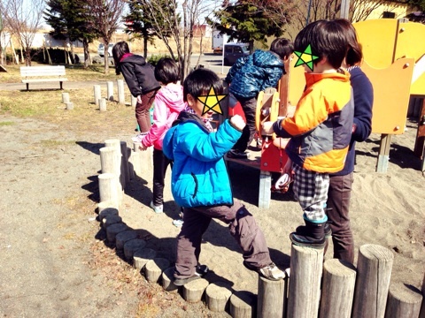 雪解けも進み公園の土も乾いていたので、近くの公園へ遊びに行きました