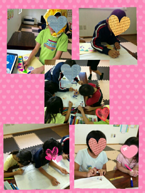 午後からは。秋祭りに向けた看板作りと、西こども館のみんなに向けた案内状を書きました
