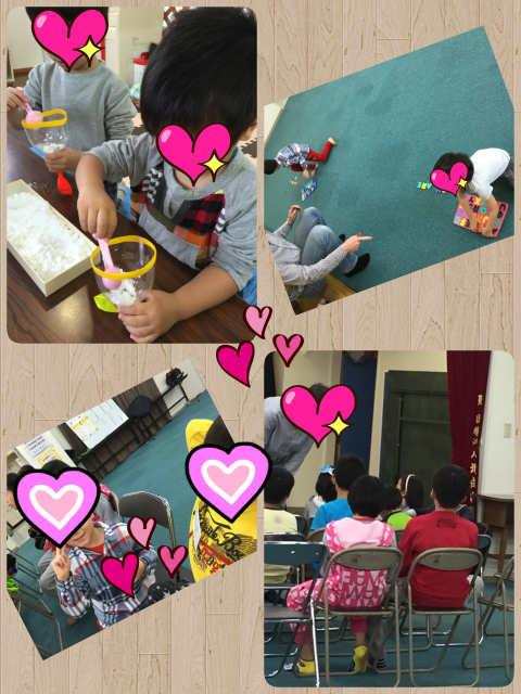 午後からは、外国人講師による英語教室を西こども館ピースのお友達と一緒に参加