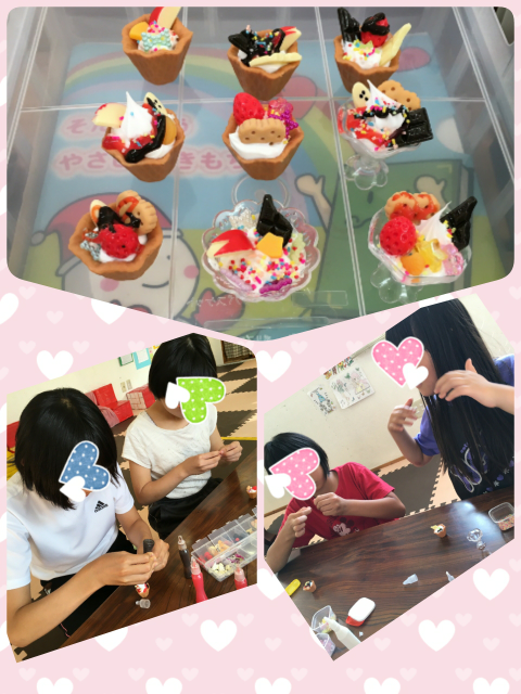 女の子たちは。デコパフェマグネット作り