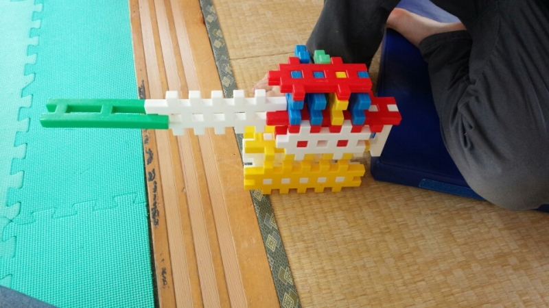 午前中はひだまり新川のお友達がブロックで銃を作っていました