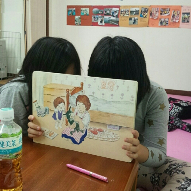 課題の後はボール遊びをしたり、紙芝居の読む練習をしたりウインク