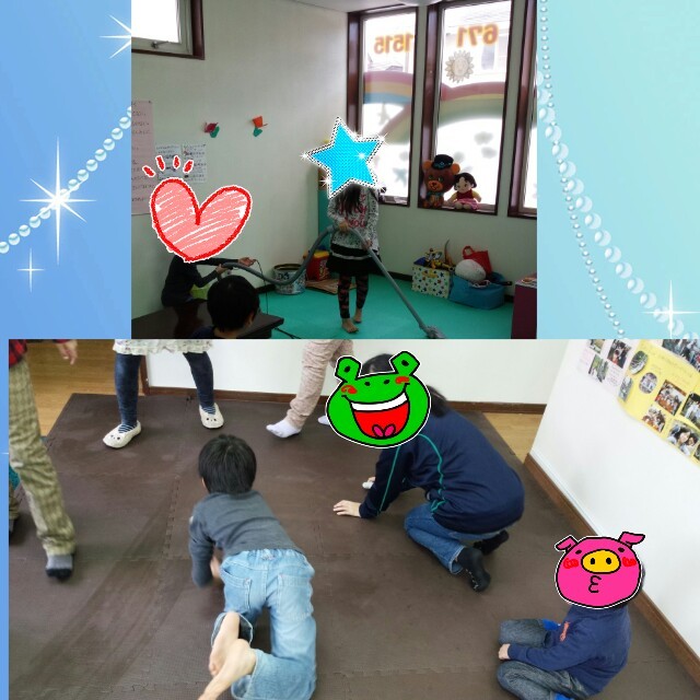 掃除機かける子、拭き掃除をする子に分かれて掃除しました![]()
